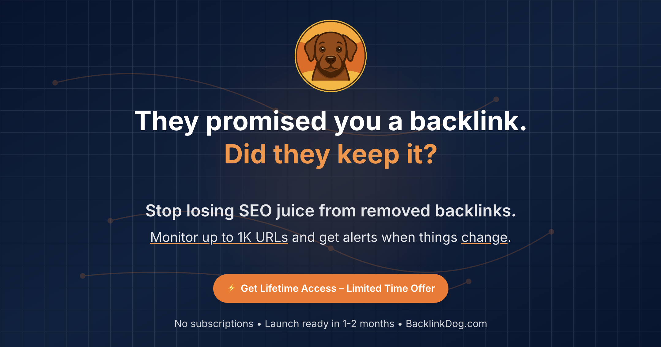 This is where BacklinkDog.com comes in, built by an indie maker for indie makers. It’s a single-purpose, no-fluff tool that solves this specific problem: It monitors your backlinks and alerts you the instant they change.