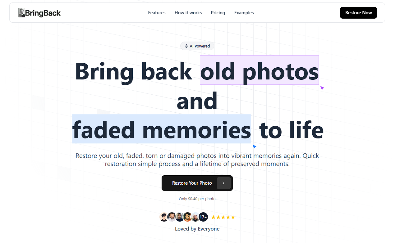 BringBack is the AI-powered service that turns your faded, damaged memories into sharp, vibrant, and moving moments.