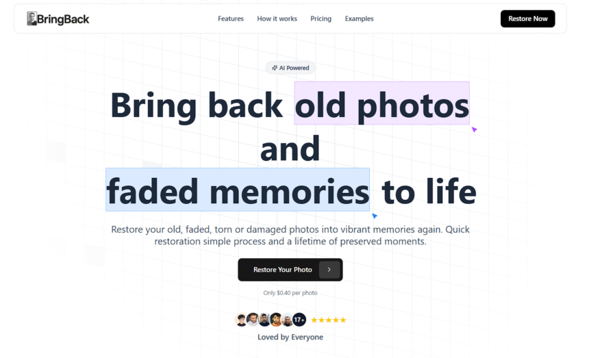 BringBack is the AI-powered service that turns your faded, damaged memories into sharp, vibrant, and moving moments. It’s fast, affordable, and brings a new dimension to photo preservation. Core Features: What BringBack Does BringBack uses cutting-edge AI for two key services: 1. AI Photo Restoration The AI meticulously analyzes and repairs all types of photo damage. 2. Lifelike Photo Animation This groundbreaking feature creates short videos from still images. 3. Smart Color & Quality Pricing,…